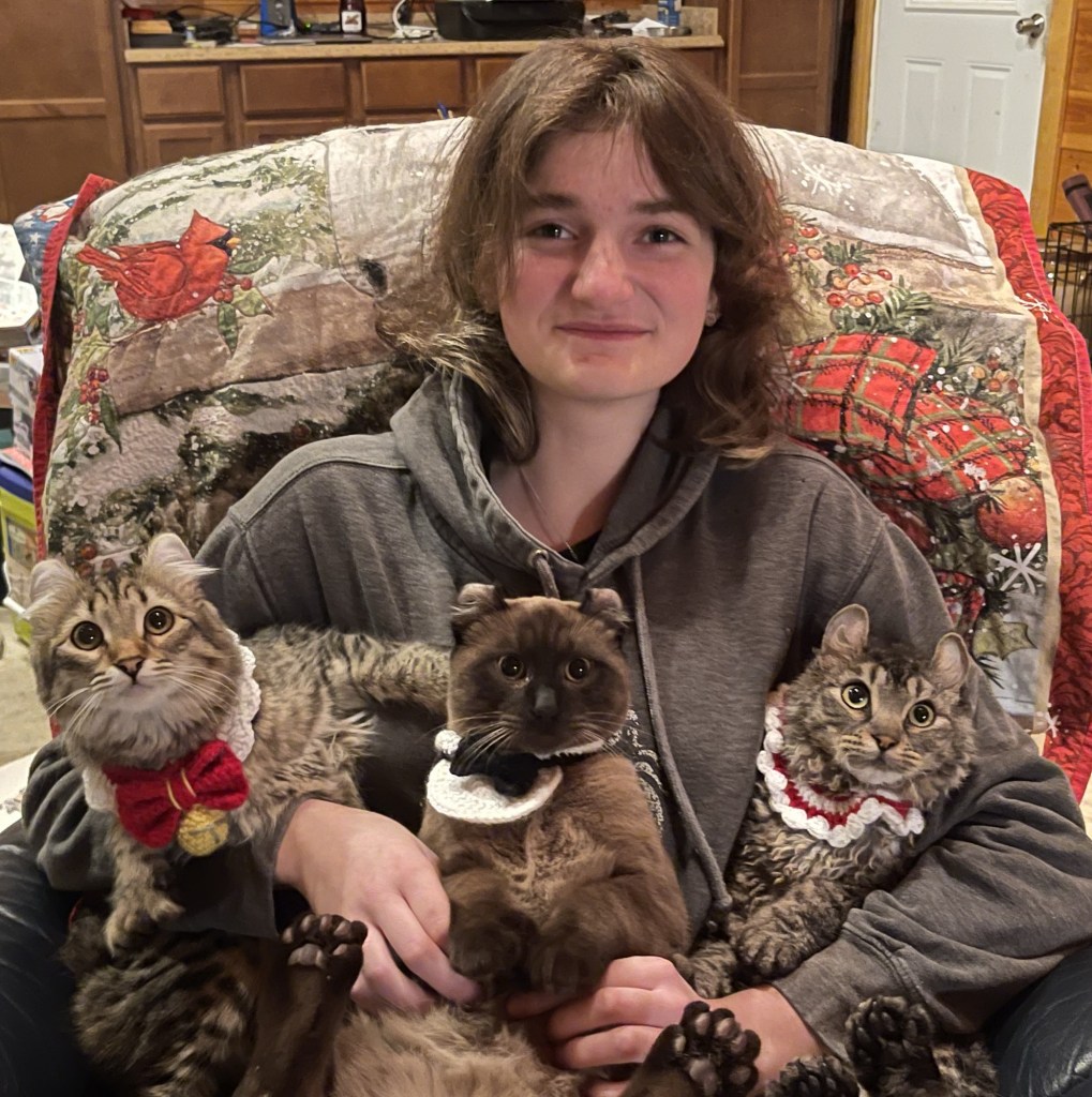 Hi! I’m Emily, the owner of Coffee Houze Critters. We as a family decided to call ourselves Coffee Houze for the love of coffee, where we live and all things critters. I’ve gravitated towards cats my whole life. They have been a part of me for as long as I can remember. I have wanted to take this journey, of breeding kitties, for many years, had never found the right personality or breed that I wanted to share with everyone, until I stumbled upon this special breed. I did a lot of research looking for a cat that had the playful, loving personality of a dog, but that alluring presence of a cat. The Highlander hit the mark. When I got my first two females I knew these were the only cats I’d ever want for myself and my family. They each have their own unique personalities, one loves to play fetch and talks to me all the time about her day, and the other is always there when you are not feeling well, she’s more of a quiet cuddler.